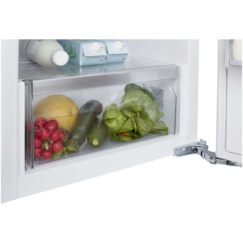 Deze koel-vriescombinatie biedt met een totale inhoud van 254 liter voldoende ruimte voor al je boodschappen. Het koelgedeelte is voorzien van verstelbare schappen en handige deurvakken, terwijl het vriesgedeelte over drie lades beschikt voor het overzichtelijk bewaren van diepvriesproducten.