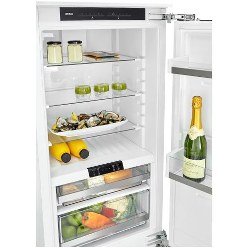 Met de Atag KD86178DF inbouw koelkast geniet je van maximale frisheid en gemak in de keuken. Dankzij de soft-close deursluiting sluit de deur altijd zachtjes en veilig. De deur-op-deur montage maakt de koelkast gemakkelijk toegankelijk en zorgt voor een grotere openingshoek, zodat je moeiteloos bij al je producten kunt.