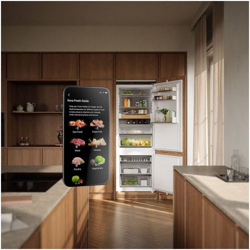Inbouw koelvrieskast 194 x 70 cm - Combi, D label, 35 dB, 370 L, DuraFresh - TFT display - Sleepdeur
