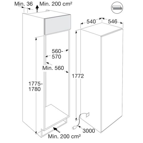 178cm - Koelkast - D , NF , 35 dB , 287 L , OptiFlow , NordicFresh , LED display + Touch - Sleepdeur Productinformatieblad - pdf Energielabel - pdf