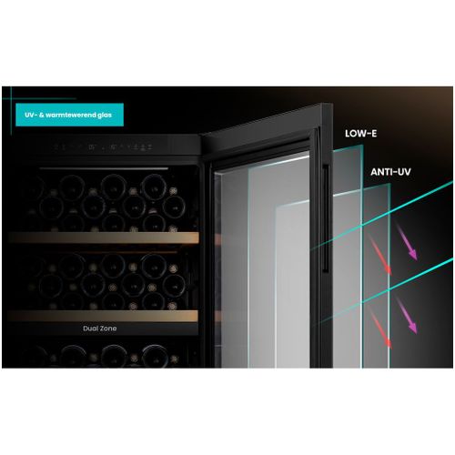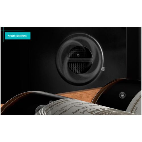 De deur van de WKV584 is voorzien van UV- en warmtewerend glas, wat je wijnen beschermt tegen schadelijke invloeden van buitenaf. Daarnaast zorgen trillingsdemping en koolstoffilters voor een stabiele en schone omgeving binnenin de kast.