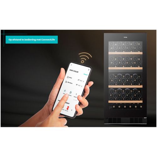 Via de ConnectLife-app kun je de temperatuur en verlichting van de wijnklimaatkast op afstand bedienen. Bovendien biedt de integratie met de Vivino-app de mogelijkheid om wijnlabels te scannen en uitgebreide informatie over je wijnen te verkrijgen.