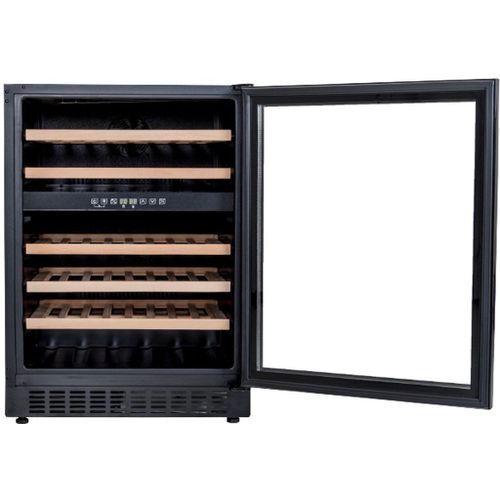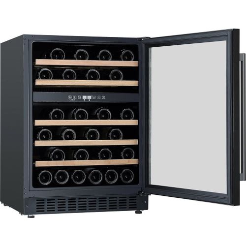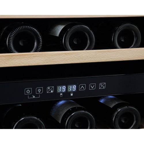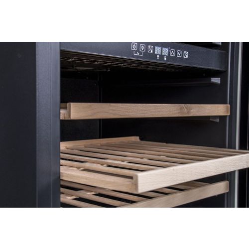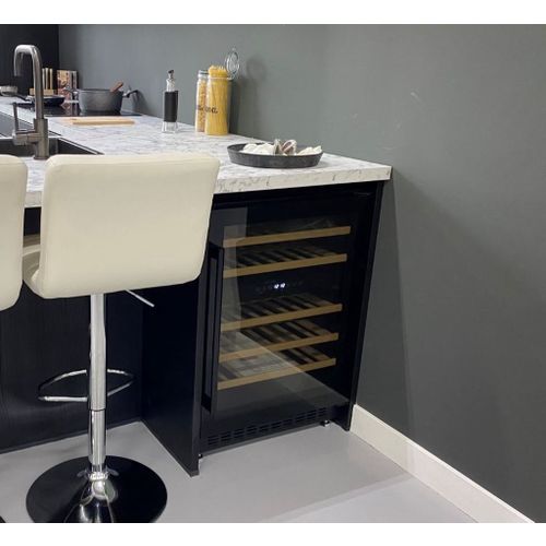 Deze Frilec BERLIN143GCWK is een strakke wijnkoelkast met genoeg ruimte voor het koelen van jouw favoriete wijnen. Zijn zwarte kleur geeft hem een mooi uiterlijk zodat hij goed naar voren komt in jouw keuken, bar of andere ruimte. Dankzij zijn twee temperatuurzones kun je jouw wijnen op twee ingestelde temperaturen laten koelen.