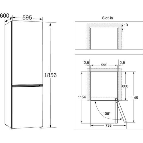 Hisense RB3K330SAIC. Totale nettocapaciteit: 330 l. Deurscharnieren: Rechts, Type beeldscherm: LED. Klimaatklasse: SN-N, Geluidsniveau: 35 dB. Nettocapaciteit koelkast: 215 l, No Frost (koelkast), Multi-luchtwegsysteem (koelkast), Koelkast binnenverlichting. Nettocapaciteit vriezer: 115 l, Vriescapaciteit: 10 kg/24u, No Frost (vriezer). Vers zone compartiment. Energie-efficiëntieklasse: C, Jaarlijks energieverbruik: 165 kWu