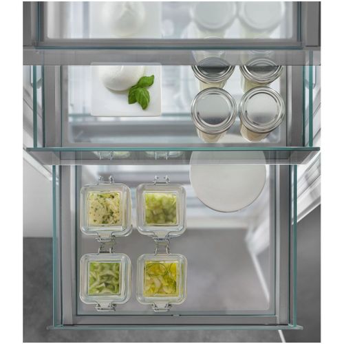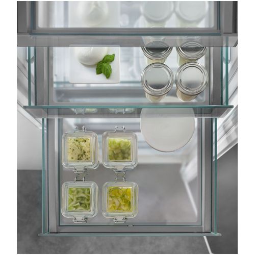 Geïnspireerd door vitrines in luxe delicatessenzaken, tonen de OpenStage-laden je voedsel op een elegante manier. Dankzij de transparante glazen laden heb je alles perfect in het zicht, en de verschillende hoogtes maken het gemakkelijk om levensmiddelen van diverse omvang op te slaan.