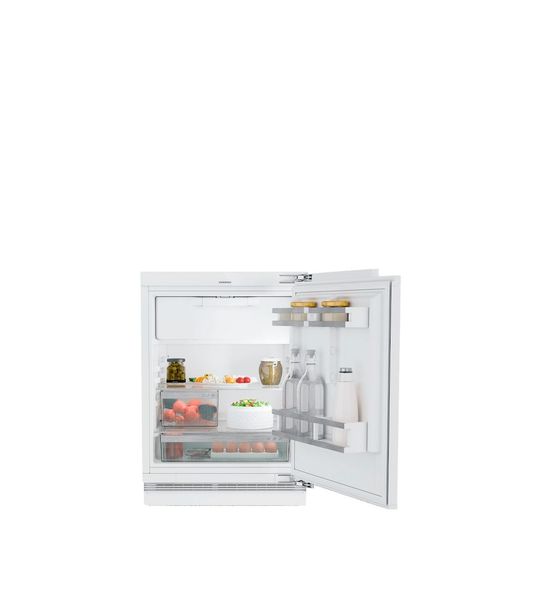 Deze extra ruime onderbouw koelkast met vriesvak in nismaat 86-92 voorziet in alle essentiële behoeften. Met de kastbreede universeelbox, de halve groentelade en gedeelde deurvakken vinden alle spullen een plekje. De temperatuur is via het display met Touch-bediening instelbaar. Dankzij de plintbeluchting kan deze koeler onder elk werkblad worden geplaatst.