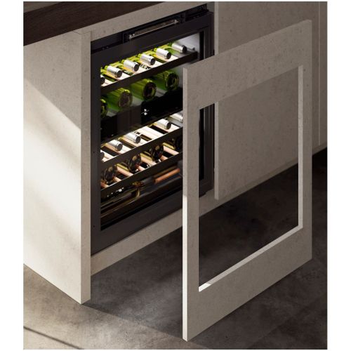 Deze onderbouw wijnkast kan uitgevoerd worden met een meubelpaneel in de kleur van de keuken en heef twee gescheiden temperatuurzones waarmee rode én witte wijnen direct op de perfecte drinktemperatuur bewaard kunnen worden. Dit onderbouw model heeft een FreshAir filter, draagplateaus op rails met aluminium front en LED zone verlichting.