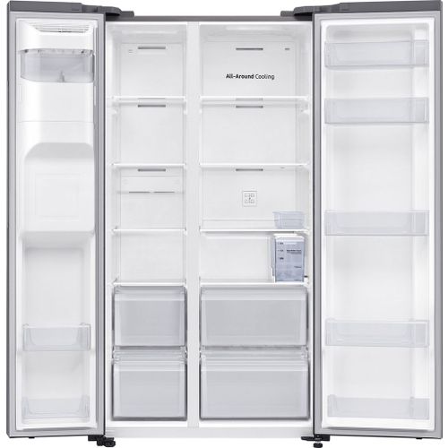 Met 635 liter heb je in deze ruime Amerikaanse koelkast genoeg plek voor al jouw boodschappen dankzij SpaceMax. Voor de ijs- en waterdispenser van Samsung RS64DG5303S9EF heb je geen wateraansluiting nodig en is ideaal voor als je al een bestaande keuken hebt. Voor de koelruimte en vriesruimte zijn er aparte koelsystemen voor het bereiken van de optimale temperatuur en kan je producten sneller op temperatuur brengen door middel van de PowerCooling/Freezing functie. Ontdooien is bijna nooit meer nodig, vanwege het No Frost systeem.