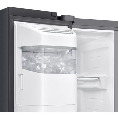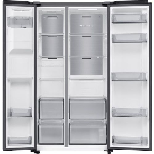De Samsung RS70F64KEFEF Amerikaanse koelkast combineert een ruim interieur met geavanceerde technologieën voor optimaal gebruiksgemak. Dankzij SpaceMax heb je meer opslagcapaciteit zonder dat de buitenafmetingen toenemen. De SmartThings AI Energy Mode je helpt om energie te monitoren en besparen. No Frost voorkomt ijsvorming, zodat ontdooien verleden tijd is. Dankzij de water- en ijsdispenser geniet je altijd van verkoeling. De Power Cool & Power Freeze functies zorgen ervoor dat nieuwe boodschappen razendsnel op temperatuur komen.