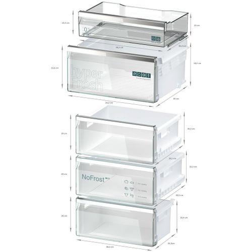 Koel-vriescombinatie met hyperFresh om groente en fruit langer vers te houden, plus noFrost voor nooit meer ontdooien – geniet van uitstekende koelresultaten in de beste energie efficiëntieklasse en geluidsklasse A. Handleiding - pdf Productinformatieblad - pdf