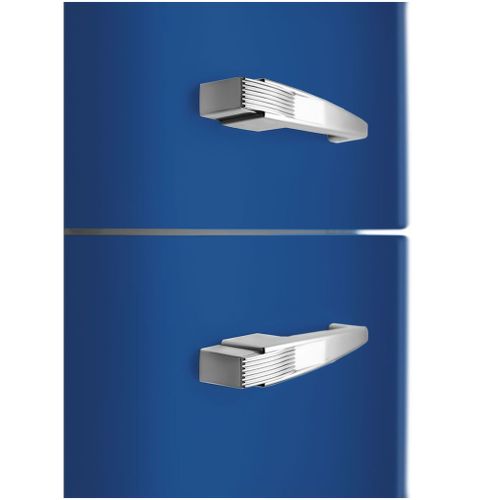 Met zijn donkerblauwe afwerking en klassieke rondingen is deze koelkast een echte blikvanger. De chromen handgreep en details geven het geheel een elegante uitstraling met een knipoog naar de jaren ’50.